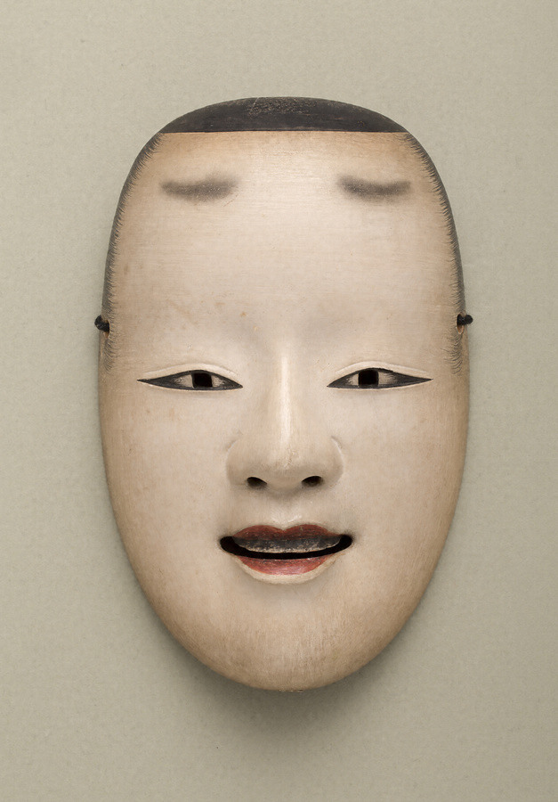 「敦盛」の面は源平の一ノ谷の戦で熊谷次郎直実に十六歳で討たれた平敦盛の面影を写したという面。目と眉の間が広いのは、鉢巻を付けることを考慮したためと思われる。貴公子の気品ある面差しが、女面のような美しい彩色で表現されている。