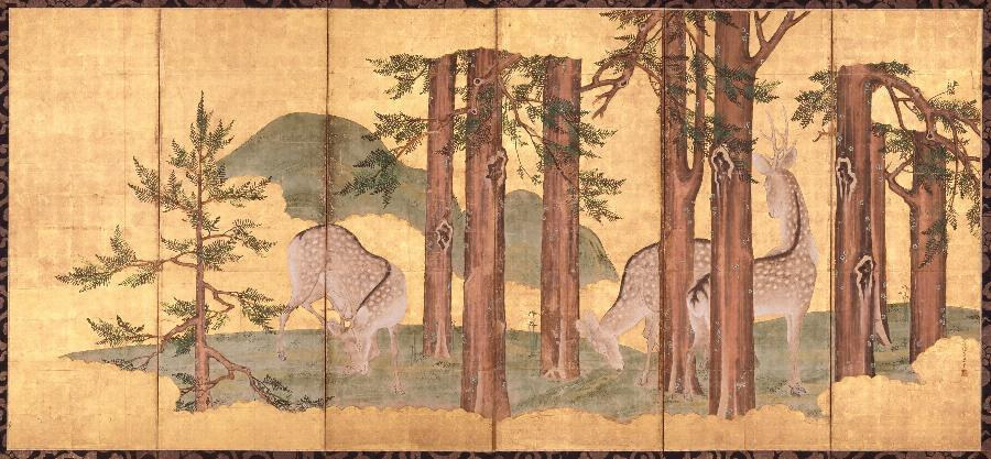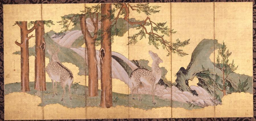 紙本金地著色群鹿図屏風 佐々木泉景筆