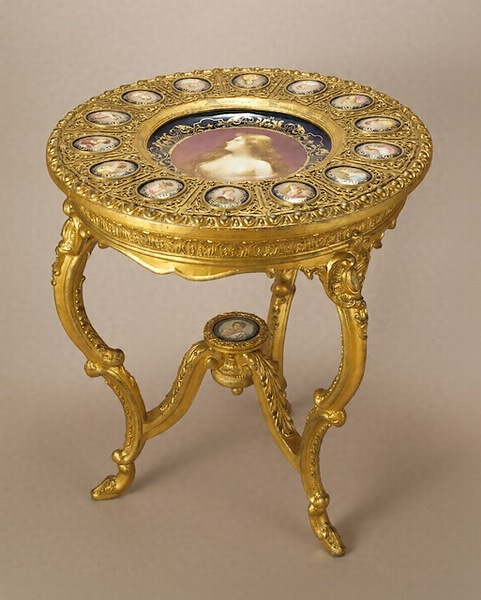 卓の中央と周囲に数多くの人物の肖像を描いた陶磁器製の装飾が埋め込まれている。描かれた人物は、ナポレオン(一方の卓の脚を支える材の中心部)、ジョゼフィーヌ(もう片方の同じ位置)のほか、マリー・アントワネット、ラ・ファイエットなど。