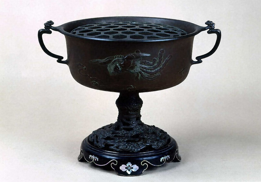鳳凰文鋳銅花盛器