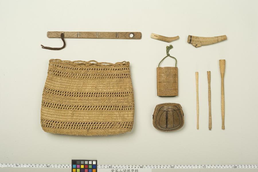 器物類の多くは板木である。そのなかで、アイヌ工芸品9点(煙草入・印籠・小刀拵・小物入等)は、製作時期に一定の確証のあるアイヌ工芸品としては最古例と考えられる。