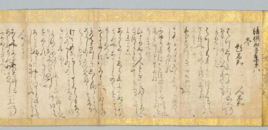 伝称筆者は西行(1118~1190)である。「白河切」の多くは掛幅装であるが、本作品は、もと冊子本の断簡を巻子装にしたものである。