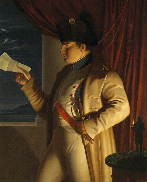 月光と蝋燭の灯火で手紙を読む皇帝ナポレオン
