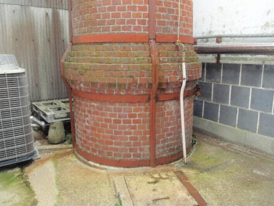 中心敷地から一五〇メートルほど北東の敷地に建つ七号蔵に附属する煙突。戦後の一時期、ここで醤油醸造が行われており、その施設の一部と伝わる。基部の直径が一・七メートル、高さ一九・五メートルで、西条地区に唯一残る円形の煉瓦造煙突となる。