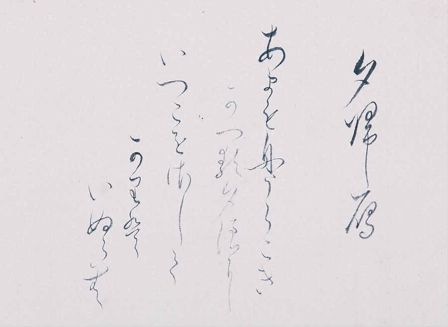 蓋表に「齊直公君夫人 御染筆」、蓋裏に「天保四年癸巳五月蒙 御附頭之 台命勤役中賜之 朝倉孫右衛門長経」と墨書があり、幸姫(9代佐賀藩主鍋島斉直室)直筆の和歌を、天保4年(1833)に御付頭の朝倉長経に下賜されたものとわかる。冬鳥のなかでも雁は哀れ深いものとして好まれ、多く和歌に詠まれる。「夕帰雁 あまも舟うらこきかへる夕浪に いつこをさしてかりはいぬらむ」