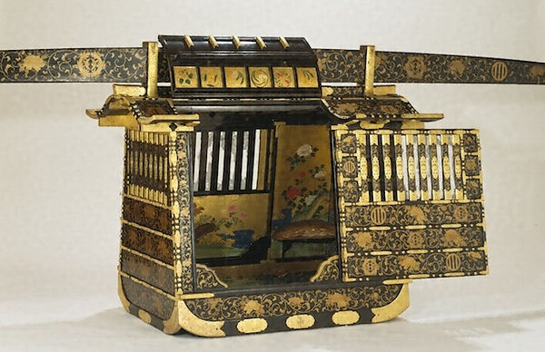 この乗物は、江戸時代中期(18世紀前半)の制作とされる。黒漆塗りに金蒔絵が施され、伊達家の家紋である「竹に雀」と「三引両」が描かれている。内装部分には、金地に墨などで、風景と草花が丁寧に描かれている。女性専用の駕籠と思われ、大きさや装飾から、実際に伊達家の女性が愛用したものと推測される。同種の駕籠は、わずかしか現存しておらず、文化的価値も極めて高い。