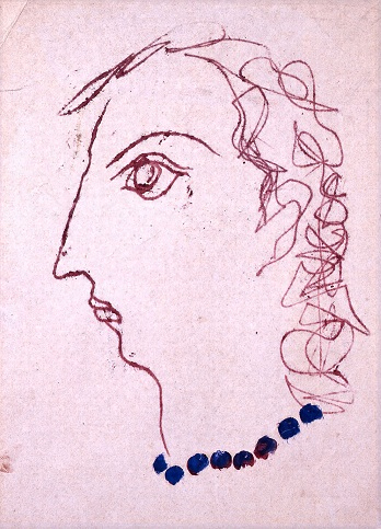 本作もまた、そうした女性の魅惑への陶酔から生まれたものであろう。無造作にも見える線と、わずかなグワッシュによる着彩で描かれた、大きな眼をした女性の横顔。不思議な気品とどことない官能も感じられる。