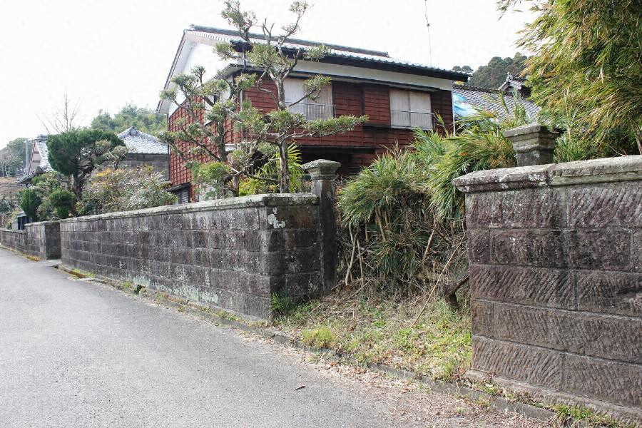 敷地の東辺を画す石塀と、そこに二所開けられた門柱からなる。門柱は二所とも高さ二・三メートルの石柱を立て、正面には装飾を施し、上部に笠石を載せる。石塀は江戸切仕上の切石を整層積にし、高さ約一・七メートルとなる。集落の景観に寄与している。