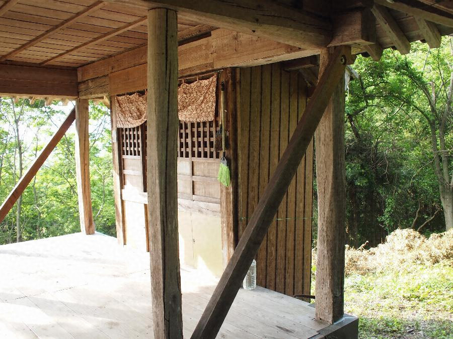 端四国八十八箇所霊場の第一三番札所。宝形造本瓦葺の三間堂で、桁行四・〇メートル、梁間三・九メートルの規模の三方吹放ち。中央奥に仏間を張出し、天井は棹縁天井とする。縁を設けない簡易な作りながら、本瓦をもちいるなど重厚な雰囲気を見せる。