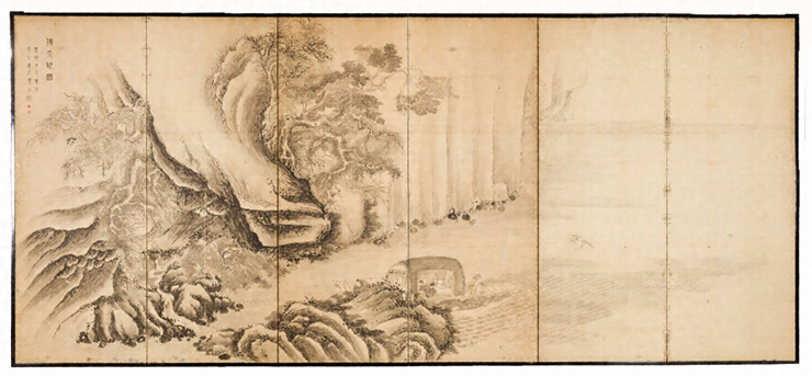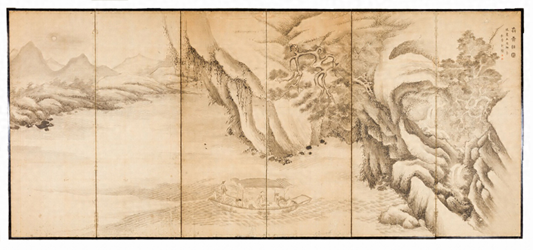 彭城百川筆 紙本墨画 前後赤壁図屏風