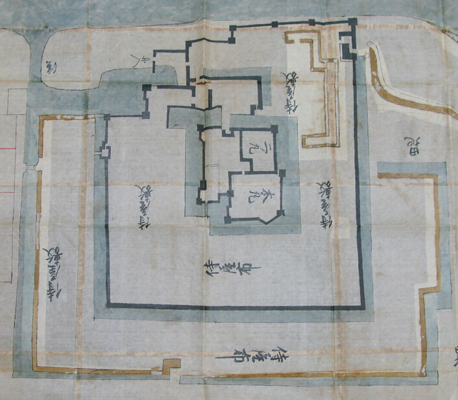 今治城を周辺部分も含めて描いた絵図。城郭、侍屋敷、城下町、堀、川、周辺村落の位置関係を大づかみに示している。城郭部分の描写は粗く、本丸、二の丸の形状が実際に異なり、少し折れ曲がった形に描かれているが、位置関係は正確に捉えている。黒四角で図示されている櫓の位置もほぼ正確である。外堀の北西側には朱書で碁盤の目状に城下町を描く。周辺部分には、蒼社川、浅川が描かれている。今治城に関する絵図は、寛永4年の「幕府隠密今治城見取図」(幕府隠密図)をはじめ、正保年間(1644〜48)作成の正保城絵図の写し、貞享2(1685)年と享保9(1724)年に城の修理のために幕府に提出した絵図、安永8(1779)年の屋敷割を示した絵図などが知られるが、本絵図はそのいずれとも内容が異なる。