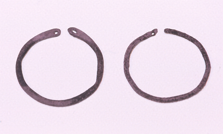 棒状の銀で円環をつくっているが、両端部は薄くして径1mmの小孔が空けられている。