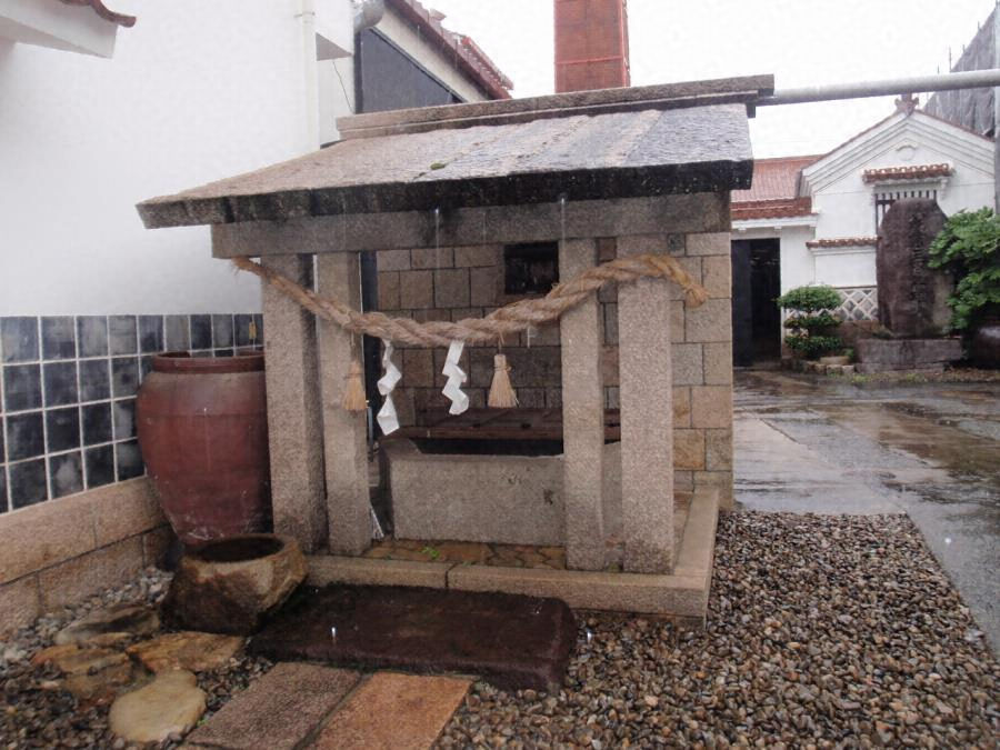 南端棟の南東方に位置する。井戸本体は切石積六角平面の井戸桁を設ける。井戸桁の一辺は九七センチメートルの規模。井戸屋形は背面側を壁状に積み、正面には左右に二本柱を配し、石造屋根をかける。重厚な井戸屋形が、酒造業のランドマークとなっている。