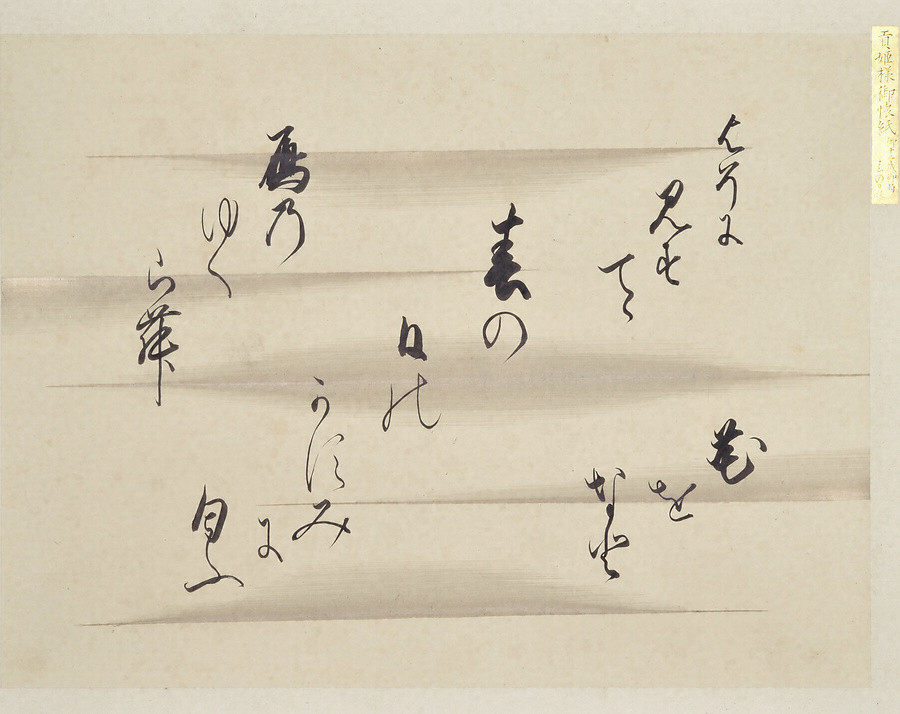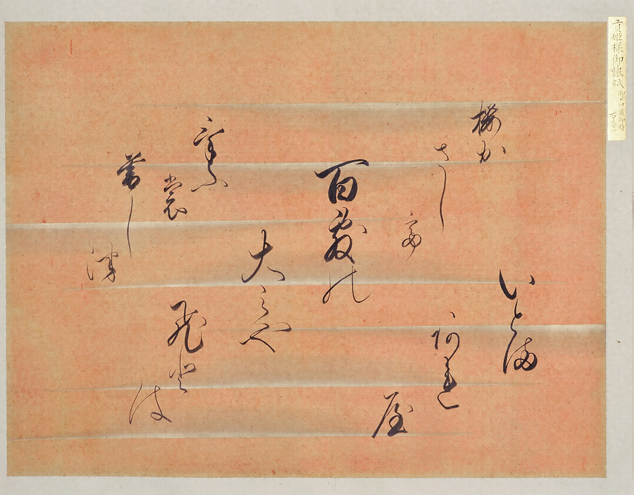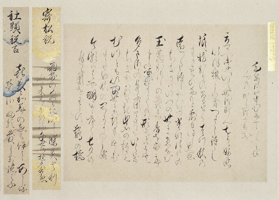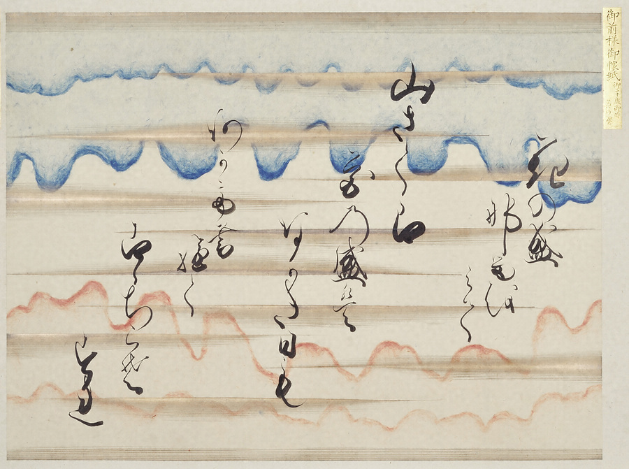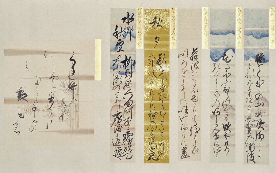 江戸時代後期の公家・大名らの手になる和歌色紙を中心とする書画作品集。巻頭は10代鍋島直正継室筆姫の和歌書「御前様御懐紙 御二十歳御時」に始まり、直正長女の貢姫12歳・14歳の和歌書が続く。以降、久世三位通熙、冷泉前大納言入道尊覚、中園三位実綱、右近衛権少将公前、圓諦院、中院権大納言通知、大炊御門大納言経教、伝法輪大納言公富、平松宰相時庸、烏丸宰相資慶、富小路三位、姉小路左中将実道、裏松左中弁資清、久我大納言建通、大炊御門前中納言家信、五條宰相為定、中院侍従通繋、中院中将通富、藤波三位教忠、藤井三位行学、万里小路侍従愽房などとおもに公家衆の書が続き、松平楽翁定信、伊達伊予入道宗紀、伊達遠江守宗城、貢姫14歳と12歳の画、細川越中守斉護、伊達大膳大夫宗徳、間部下総守詮勝の書の順に、おもに大名の書が配されている。