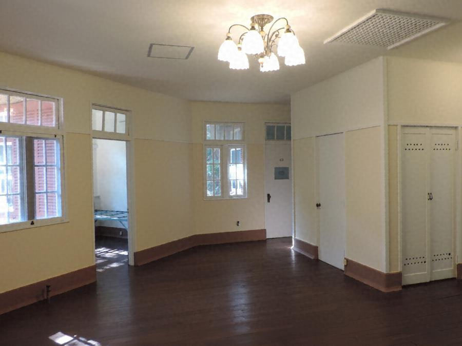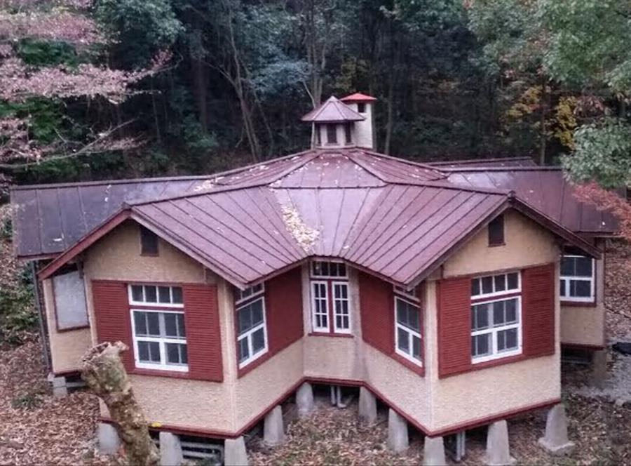 旧本館北側の斜面に建つ病棟。中央ラウンジの北を入口とし、南側に病室五室を放射状に配し、各病室の三面に窓を開いて通風と採光を確保する。外壁はドイツ壁で、窓に鎧戸をたて、ラウンジの屋根頂部に換気塔を載せる。独創的な形態をもつ個室型の結核療養施設。