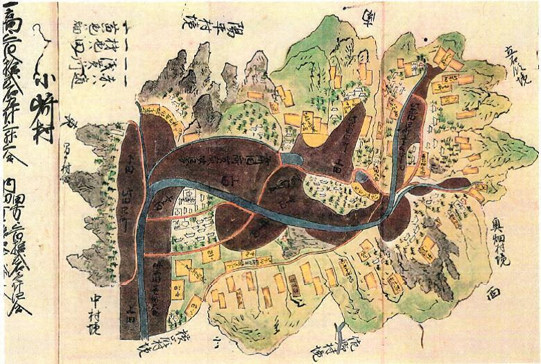 当絵図群は元禄2年(1689)に島原藩の命によって作成された村絵図が、天保7年(1836)に変更箇所を付記させる為に、一時田染組各村に返却した際に、地元の控えとして写したものである(原本は残っていない)。