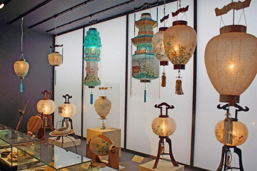 用具類としては,摺込み,張り,道具付けといった火袋本体の製作に関係するもののほか,輪作り,盛上げ,塗りといった部分品製作に関係する用具が収集されており,すべての作業工程が理解できる。また,製品では,御所型提灯,大内行灯,変形提灯など全種が収集されており,完成品の比較も可能である。なかでも,提灯の木型には紀年銘のある場合が多いことから形状年代が判じられ,見本帳などからは絵柄の意匠や志向性などが読み取れる。