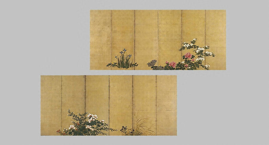 四季草花図屏風