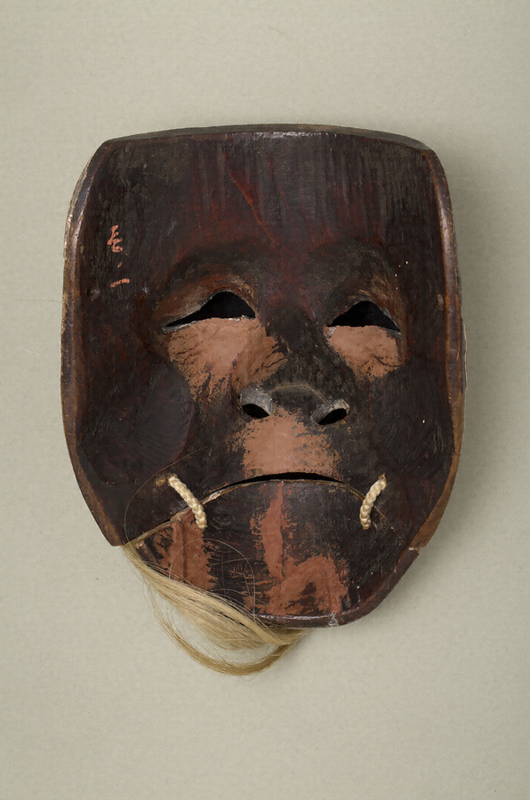 〈翁(式三番)〉で、大夫が天下泰平・国土安穏を祈って舞う時に用いる。翁面は本来、御神体であり、現在でも各地の神社に祀られている例は多い。いずれも下顎を紐で繋ぐ「切り顎」が特徴。この作品は数ある翁面の中でも殊に穏やかで柔和な笑みを湛えている。面裏は拭漆がされ、「壱ノ一」との朱書きがある。NM38からNM42の5面は一揃えで伝来し、NM38からNM40は面袋が共通する。