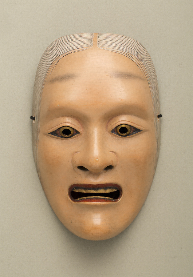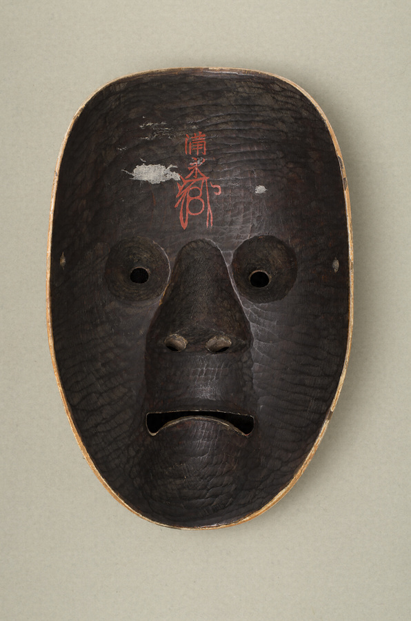 「山姥」は能〈山姥〉の専用面。姥とはいうものの、皺を一本も作らず、目と歯には金色を施して、超人的、神秘的な異界の存在であることを示している。面裏の額には、世襲面打家越前出目家四代・出目満永による「満永(花押)」の朱漆書きがある。