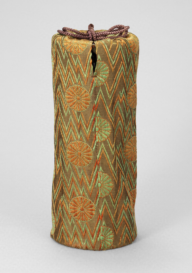 綾杉菊紋模様の胴袋が附属する。シテ方観世流・楠川正範(1907~1969)師の旧蔵品である。