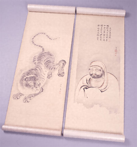 探幽齋の絵画の写し。探幽齋は、江戸初期の画家で、鍜治橋狩野の祖。幕府の御用絵師として幅広い画技で一門の繁栄を築いた狩野探幽(1602~74)のこと。佐賀藩が所有していた書画類の目録『御掛物帖』に見られる。探幽齋の七幅対の作品「達磨」「鉄拐」「蝦蟇」「龍」「虎」「梅」「竹」が写されており、往時、佐賀城に掛けられていた作品の姿を伝えるものとして非常に貴重である。