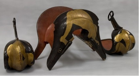 黒漆地、海有水干鞍と鐙。前輪に猿猴1匹(言わざる)後輪に2匹(見ざる、聞かざる)を、射向の鐙に1匹(聞かざる) 馬手の鐙に1匹(見ざる)を金蒔絵であらわす。居木裏に墨書で花押と年紀「慶長十五庚戌月日」あり。鐙は両笑鐙。紋板は九段透し、紋金具は三階菱。踏込は朱漆塗。鞍の形状は、古様で鎌倉時代前期の特徴がみられる。