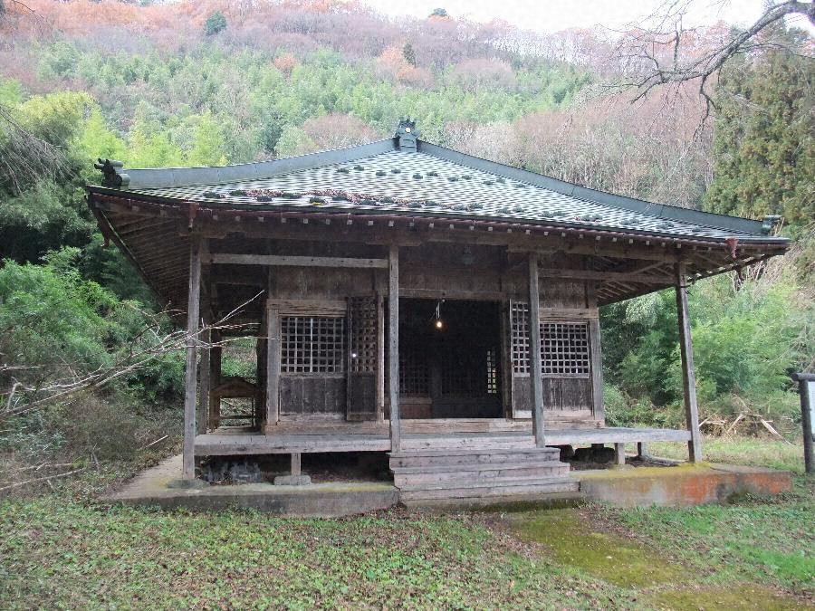 軸部は、自然石の基礎に、柱を立てる。柱は、側柱は太さ16cm前後の角柱とし、内部に立つ内陣・外陣境の柱と仏壇前面の柱を太さ23cm前後の角柱とする。側柱に緑長押、内法長押を打ち、腰貫2段・飛貫を通し、縦羽目板張りとし、柱頂部に丸桁を置く。縁は切目縁で、縁先に軒を支える柱を立てる。この支柱は縁束の柱筋に立ち、縁框を受け、飛貫を通し、軸部の側柱とは虹梁で繋ぎ、柱頂部に舟肘木・丸桁を置いて垂木を受けている。支柱のうち正面中央の2本の柱は太さ15cm前後のやや太めの向拝柱とし、側柱との繋ぎ虹梁の下端に錫杖彫りを施し、舟肘木には忍冬唐草文を描く。この向拝の前面に木階3級を設けている。
