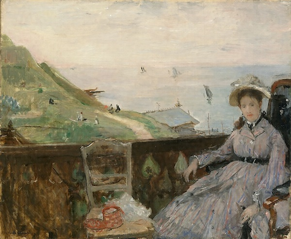 第1回印象派展が開かれた記念的な年である1874年に描かれ、77年に行われた第3回印象派展にモリゾが出品した12点のうちのひとつ。印象派を擁護する批評家の目を奪い、賞賛を受けた。背景は夏の避暑地フェカン。モデルは父方の親戚のリュシアン・ブルジエ夫人。モダンな感性による大胆な画面構成が光る。