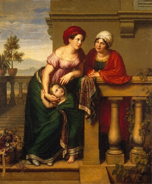 この作品はライボルトがイタリア留学を終えてウィーンに戻ってまもなくの頃の作品。静謐で安定した画面、輪郭線の重視、盛期ルネサンス風の色面構成などはライボルトの古典主義的手法の成熟を示すものである。しかし、モデルの健康的な女性の肉体美に見られる写実的傾向、温かみのある顔の表情や幼い娘の愛らしい仕草などは、冷たい古典主義理論とは無縁であり、ここに時代の空気とも言うべきロマン主義の影響、さらにはライボルトが肖像画家として大成功をおさめることになった要因を見てとることができよう。