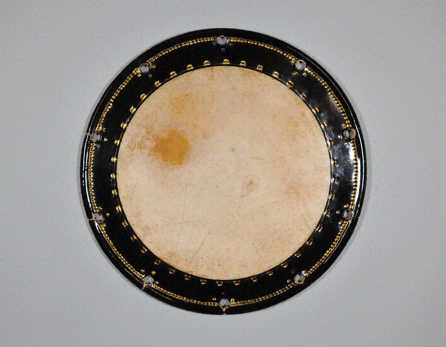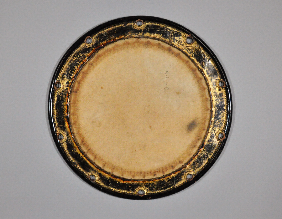束熨斗宝珠蒔絵太鼓胴に附属する太鼓裏革で、GK21~23で一具となる。古革で飴色になっており、丸神製である。
