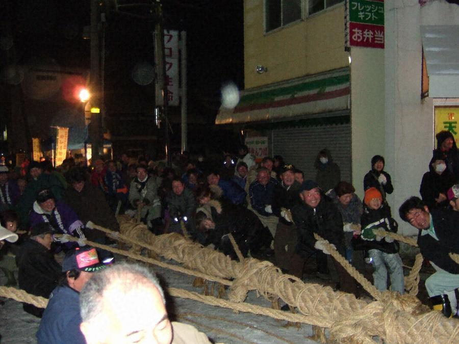 綱引きは上大町・栄町・上栄町を上丁、大町・中通町・通町を下丁とし、大町交差点を境として、上下両丁で争われる。綱引きに使ったものは、町中の災厄を集めているので、家の中に入れてはいけないという禁忌もある。