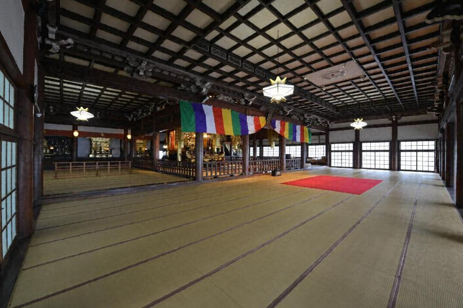 境内奥寄りに南面する、入母屋造で桁行梁間とも三〇メートル規模の大堂。内陣の三面に広い外陣と脇陣を配する時宗本堂の特徴を示し、各陣とも高く格天井を張り広壮な内部を創る。正面の向拝や内部小壁の彫刻も秀逸で、総本山寺院らしい荘厳と華麗さを備える。