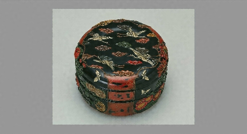 初代金城一国斎は、大阪で漆芸を修行後、尾張徳川藩小納戸御用塗師に。初代の次男である二代は、諸国を遍歴して彫漆(塗り重ねた漆塗の層を彫刻する技法)の技術を習得する過程で“高盛絵(たかもりえ)”を考案し、大阪で開業。天保14(1843)年眼病治療のため広島を訪れ、江波焼陶工の長男・木下兼太郎に漆芸を伝え、兼太郎は三代一国斎を襲名して高盛絵を完成。以後、高盛絵は広島の伝統工芸として現在まで伝えられています。