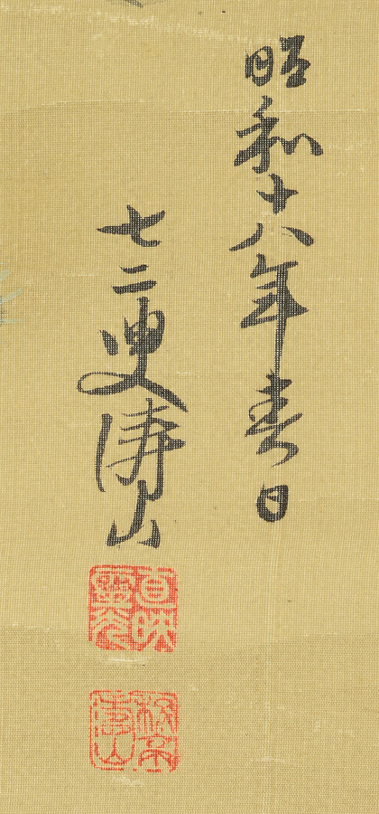 侯爵鍋島直映は幼少期から日本画に親しみ、禎子夫人とともに、花鳥画を得意とした荒木寛友に学んだ。落款に「七二叟涛山」とあるが、「涛山」の号は関東大震災以後、侯爵鍋島家本邸となった渋谷松涛にちなむ。