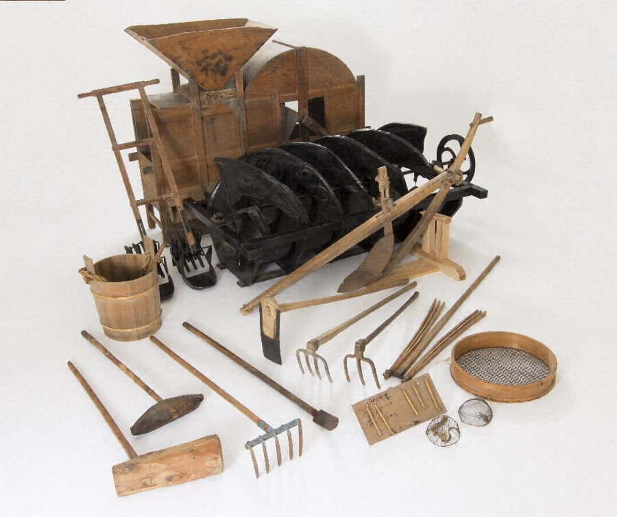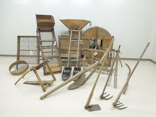 生産用具は,稲作を主とした農耕に,山樵や養蚕,紡織などを複合させた生業の様相が読み取れるほか,村の中の生活や生業を支えた桶屋,鍛冶屋,村医者などの用具類も収集されている。また,農耕用具の中には,大正期から裏作で行われているチューリップの球根栽培用具も含まれており,地域的特色がみられる。