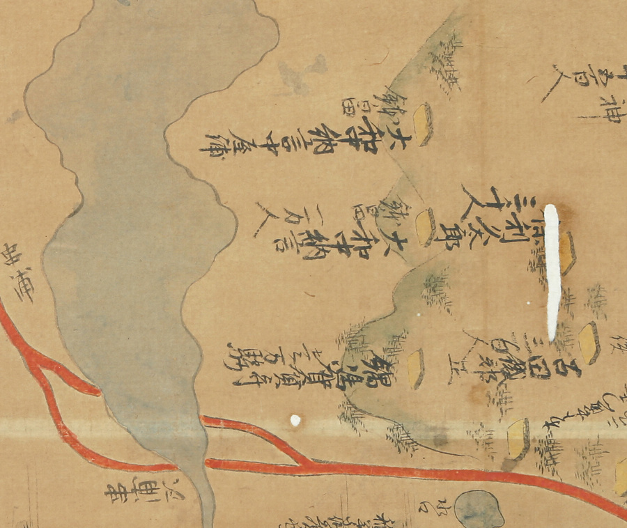 本図には、名護屋城の縄張りとその周辺に配された大名等の陣屋が描かれている。類品は数多いが、本図は「陣主不明分」の書き入れを伴っており、佐賀県立名護屋城博物館所蔵のものに同様の作例がある。名護屋城の左に位置する入江(串浦)の奥に見える「鍋嶋加賀守」が鍋島直茂の陣屋を示している。陣屋は高岳という丘陵部に位置しており、130箇所を超える陣屋のうちでも最大級の規模を誇った。鍋島直茂は1万2000人の軍役を命じられ、加藤清正らと同じ二番隊に編成された。