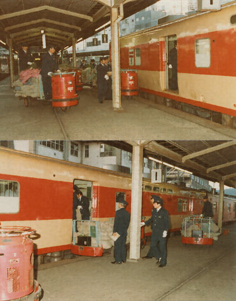 鉄道郵便車へ積込作業(東京駅)
