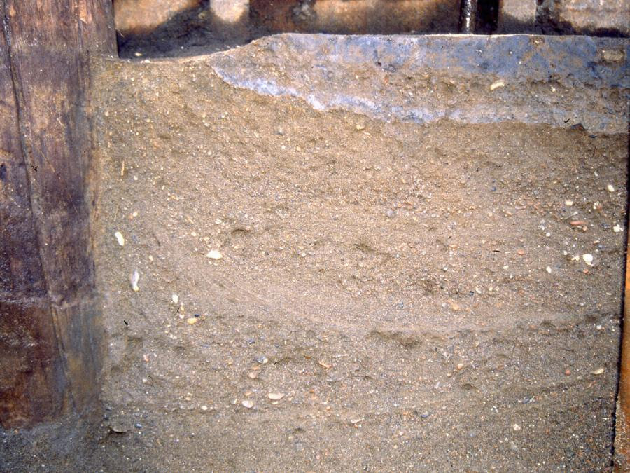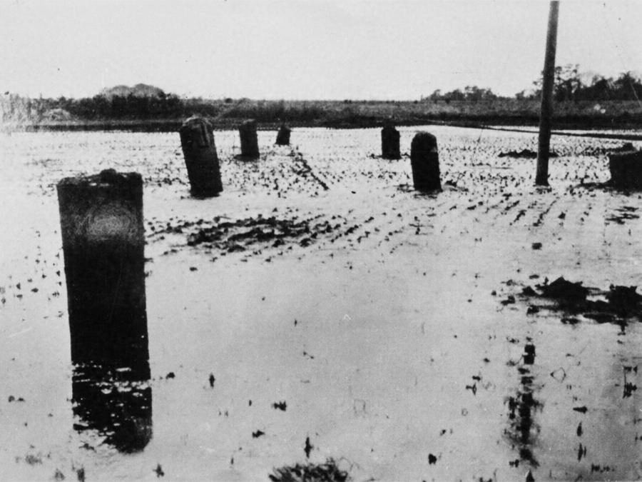 大正12年の関東大地震の際に相模(さがみ)川(がわ)河口近くの水田から現れた、鎌倉時代の橋脚。大正15年に史跡として指定され保存されてきたが、近年の発掘調査により、地震に伴う多数の自然現象が発見された。液状化現象としては初の指定である。