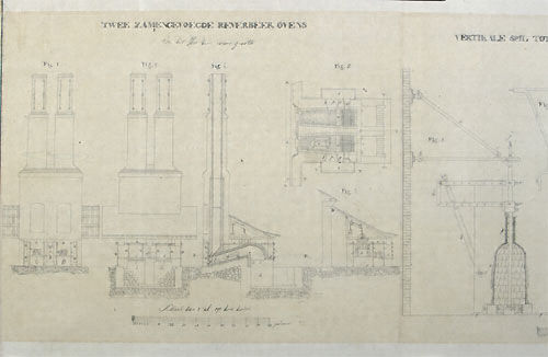 武雄鍋島家に保存・伝承されていたもので、大砲や銃、反射炉や旋盤などの設計図65点と切形など15件114点がある。設計図には、オランダ語と日本語の両方の文字で説明書きが付けられているものもあり、研究の様子をうかがうことができる。また設計図のほかに、切形(型紙のようなもの)や拓本、大砲台車の絵図など砲術や試し打ちに関する文書類が多数ある。