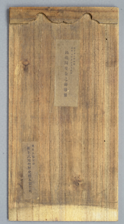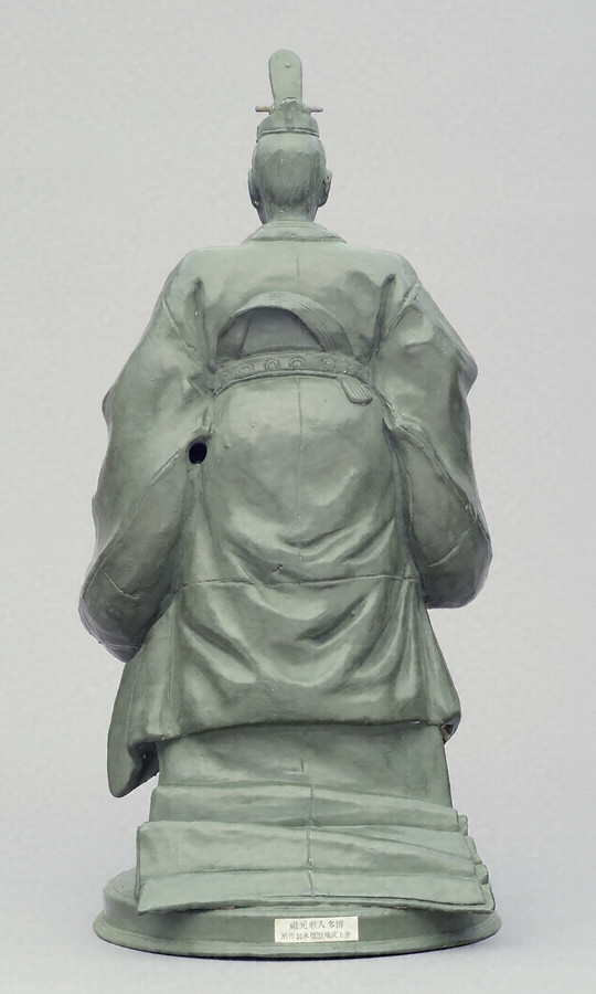 明治の博多人形界を牽引した人形師井上清助(1867~1922)が立ちあげた井上式地歴標本製作所で制作された10代佐賀藩主鍋島直正銅像(大正2年建設)の模型。この製作所では、世界の人種や風俗、武具甲冑のほか伊達政宗や黒田長政など地方の英雄を人形として売り出していた。