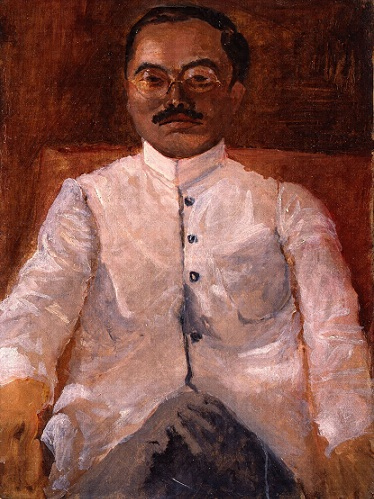 モデルは当時北海道大学医学部長(後に総長)の今裕教授。絵画制作を得意とし、1925年に創設された北海道美術協会(道展)では初代副会長を務めた。三岸好太郎は中学時代、北大で昆虫標本画を描くアルバイトをしており、その後も絵画を愛好する北大の教授たちと交流があったようである。引き締まった表情を細やかにとらえた顔の部分に対して、その他はかなり大雑把。手などは曖昧のままにおわっている。