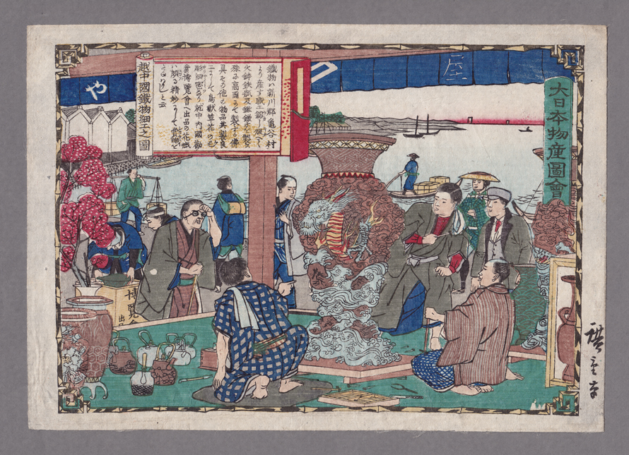 三代歌川広重の版画で大日本物産図会の1枚である。版元は東京日本橋の錦栄堂萬屋の大倉孫兵衛。