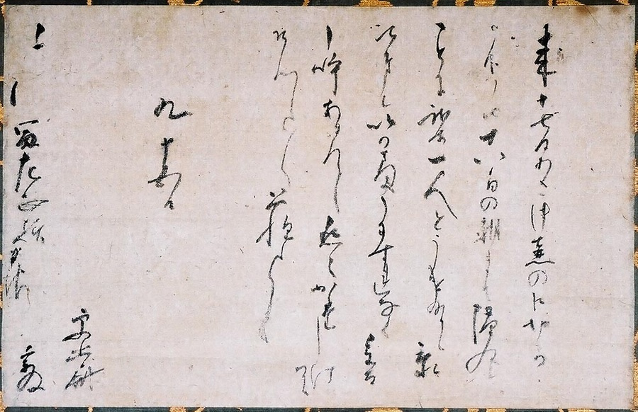 この書状は冨田左正からの口切茶事への招待状に対する礼状。九月十五日付の文面で十八日朝までひま取る仕事で伺えないと述べ、自分一人だけの招待を恐縮の様子である。口切の茶会は新茶を葉茶のまま壺に封印し、暑中を経て九月以降に口を切って葉茶を挽いて抹茶を点てる一年で最も重要な茶会である。冨田左近は通称平右衛門・左近将監、秀吉の側近。茶湯に親しむ風流人で、文禄・慶長の役では父子とも戦功があった。