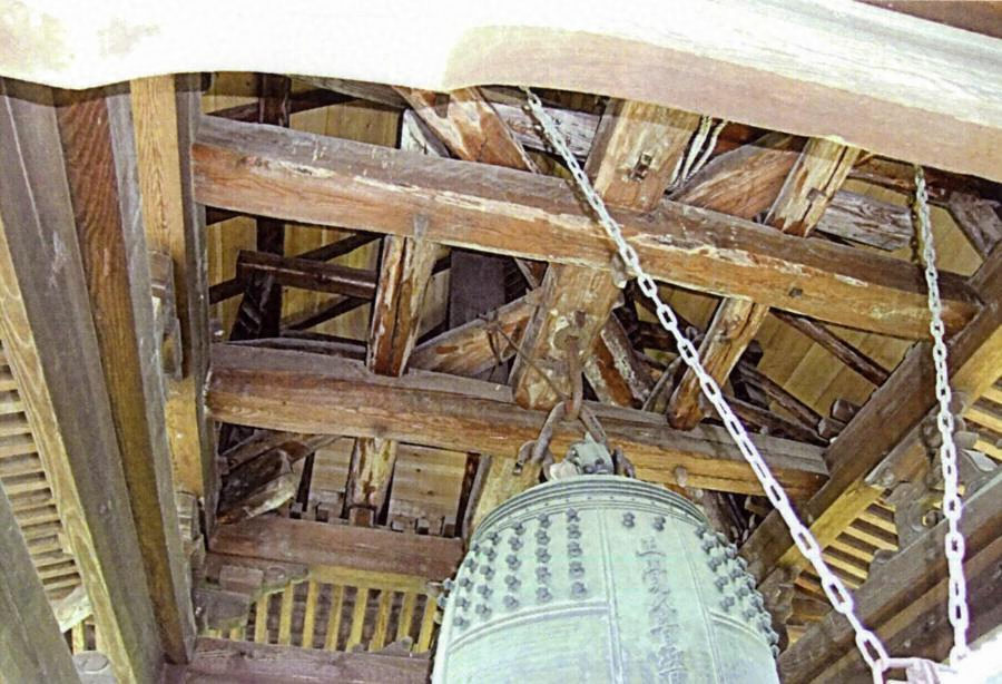 境内南西隅に位置し、高い亀甲積基壇上に建つ方一間吹放ち形式の鐘楼。南北棟の入母屋造で桟瓦を葺き、軒は二軒繁垂木である。面取角柱を四方転びに立て、柱上に三斗、中備に蟇股を配する。通りからも望見され、松代城下の景観に寄与する鐘楼である。