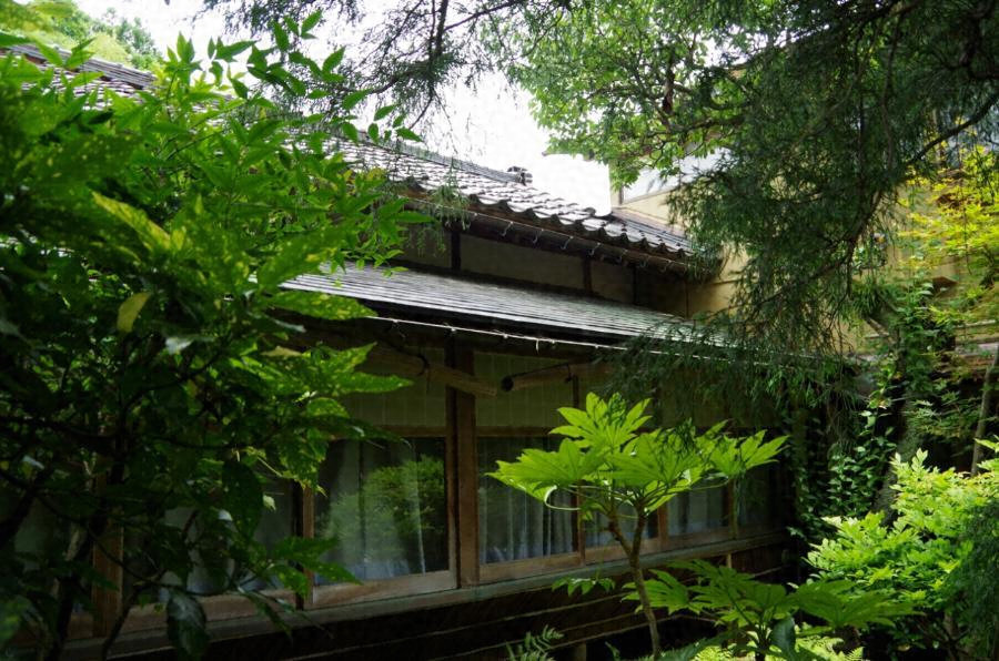 本館の南東に接続して建ち、東西に庭を配して落ち着いた佇まいをみせる。切妻造桟瓦葺、平屋建、南北棟である。床柱に神代欅、天袋框に黒柿など銘木を用いながらも平明な構成としている。また八畳の天井は三枚の板で張られており、大胆な意匠となっている。