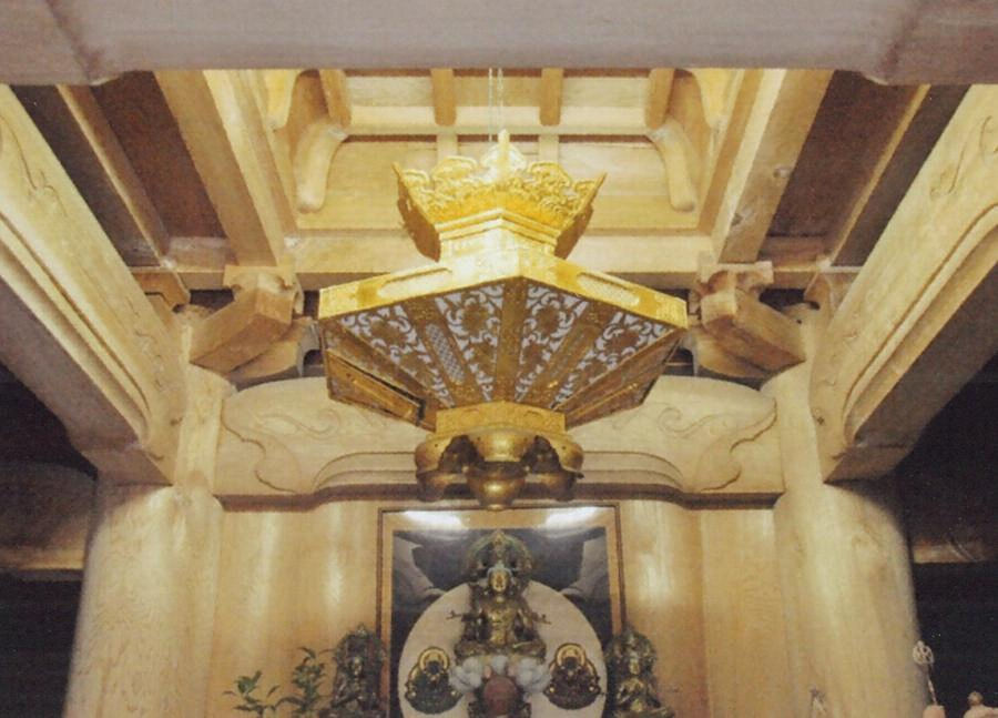 本堂北側の高台に建つ。下層は方三間の周囲に縁を廻らし、組物出組、二軒繁垂木とし、上層は円形平面、四手先組物で二軒扇垂木の軒を支え、上下層とも銅板葺とする。四天柱内を折上格天井とし虚空蔵菩薩を安置する。安定感ある塔姿で、伽藍景観を引立てる。