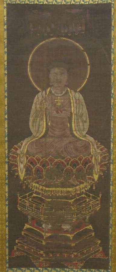 絹本著色十字架捧持マニ像 一幅