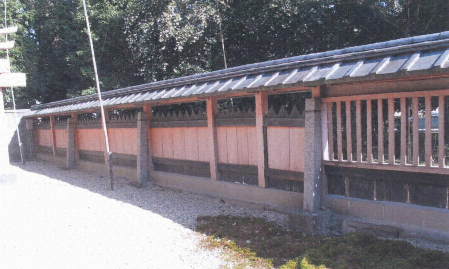本殿門両側から、本殿左右に矩折れにのび、東方は南面三間東面八間、西方は南面三間西面八間を数える。南面と東西面の前方五間は角連子の透塀、後方六間は尖頭形の板を並べた透塀とし、二種の形式を併用させて変化をつける。本殿廻りの神域を画す玉垣。