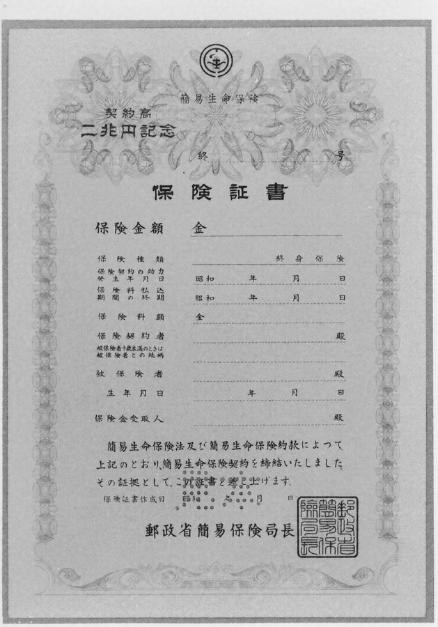 御誕生記念養老保険証書